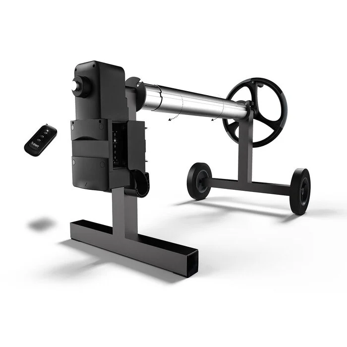 Het Oprolsysteem Aqua5 Elektrisch is een krachtige en gebruiksvriendelijke oplossing voor het moeiteloos op- en afrollen van je zwembadafdekking. Dankzij de oplaadbare motor en bediening met één druk op de knop bespaar je tijd en moeite, terwijl je zwembad goed afgedekt blijft.